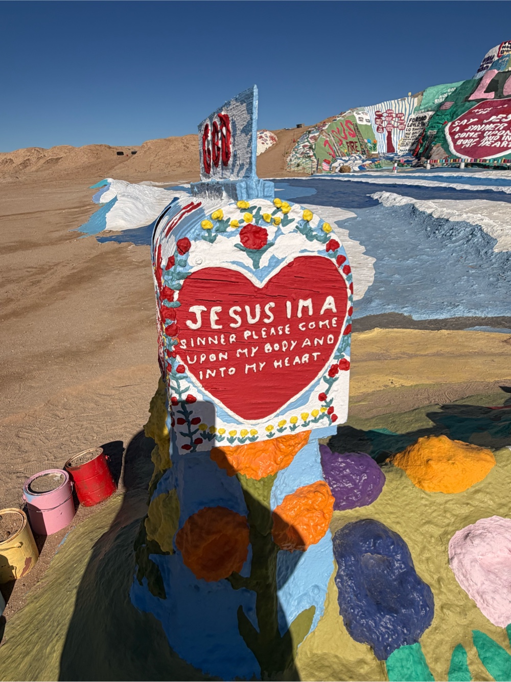 These are excerpts from the Salvation Mountain pamphlet . Also the salvationmountain.us internet site. Leonard Knight died 2014 but a caretaking group continued to maintain the site.  The volunteers I met were kind and helpful.