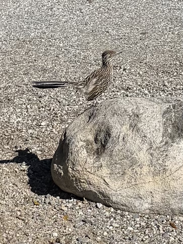 I was blessed to see a road runner when I first pulled in. Another one returned yesterday. There was no accompanying coyote.
