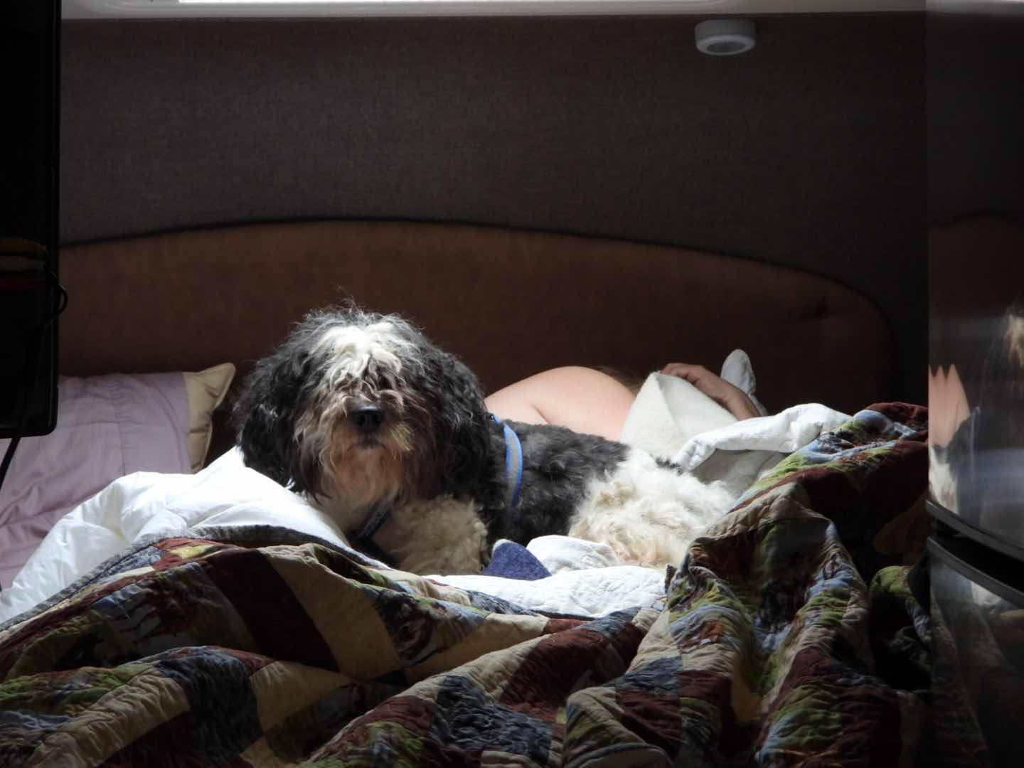 I’ve moved along to coffee. A saint would have lingered at the breathing and blessing of the vision of the lake. A poet would have compared the morning to a true love. The dog in the story would be frisky and young. He might bounced around the master or stood steadfast by his side. My old blind cockapoo is in the throes of love having his back scratched by his goddess.. He’s coughing like the old man he is. His congestive heart failure making his breathing sound like a lifetime of cheap cigars. She massages his back. They are happy. That makes me happy.