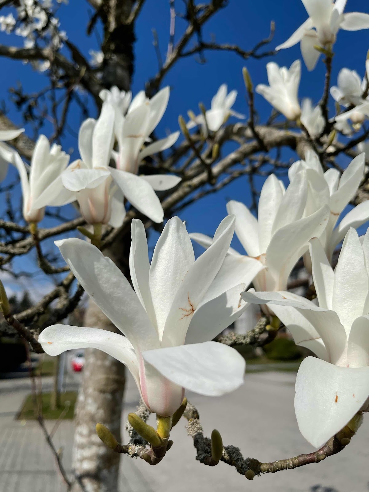 I’m here now. I’ve realized I’ve not blogged for a while since my iPad keypad 't' key came loose. I’ve yet to find someone to repair it or another keyboard. Another task on the list. But I’ve now done this blog with two fingers mostly so I can add some recent pictures of Madigan and the spring flowers we see these days on our walks. Thank you God for all your blessings.