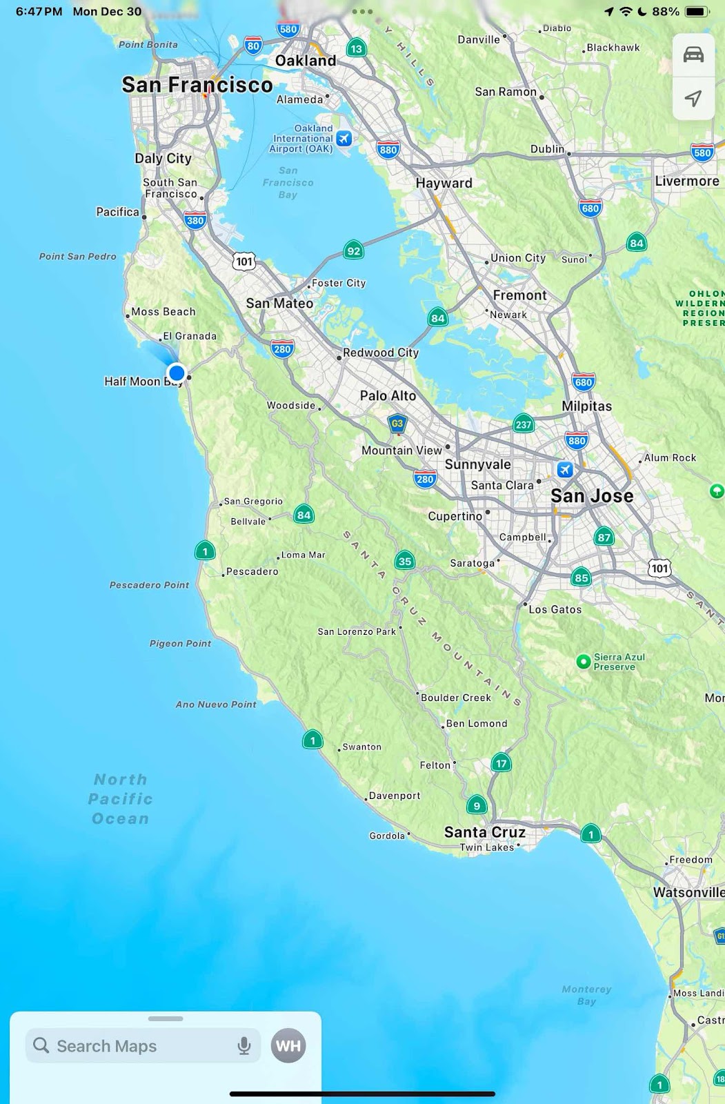 I’m wearing down with the driving. Soon I’ll be able to stay for a while in one place. If there’s room in LA Long Beach I’ll book for a week or two before going back to Yuma. I’m still thinking of Rosario. This place on Half Moon Bay is heaven. $50 with electricity. Electricity is all I need for the Starlink and space heater. I filled up the water and emptied the black and grey water tanks at the Eureka RV resort so I’m flush. It bothers me that the exchange rate for money is what it is. I will pay more in LA. Location, location, location.