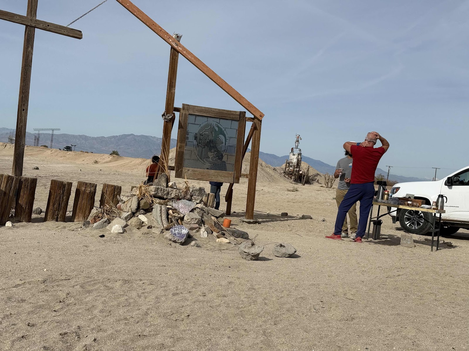 I made it to the Seaside Baptist Church service at 9 am with Jack at Bombay Beach. That was after I got stuck in the sand with my Vespa twice and three fellows helped me get the bike out. Madigan loved it there running all over the beach with the other church dogs before the service began and he settled down at my feet.