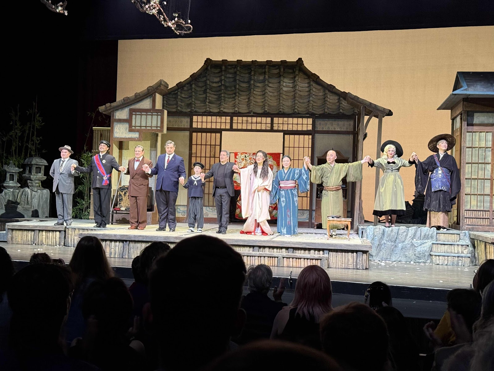 I don’t like announcements, political or otherwise. Fortunately they were brief. Frankly, I always want to skip right to the beginning. That was the orchestra which was unbelievably superb. Music director Jacques Lacombe out did him self with the collective of fabulous musicians. What a start to a magnificent night. Next the perfect set that took me instantly back to my time in Japan. The singing began with acting thatt all just flowed and fit..