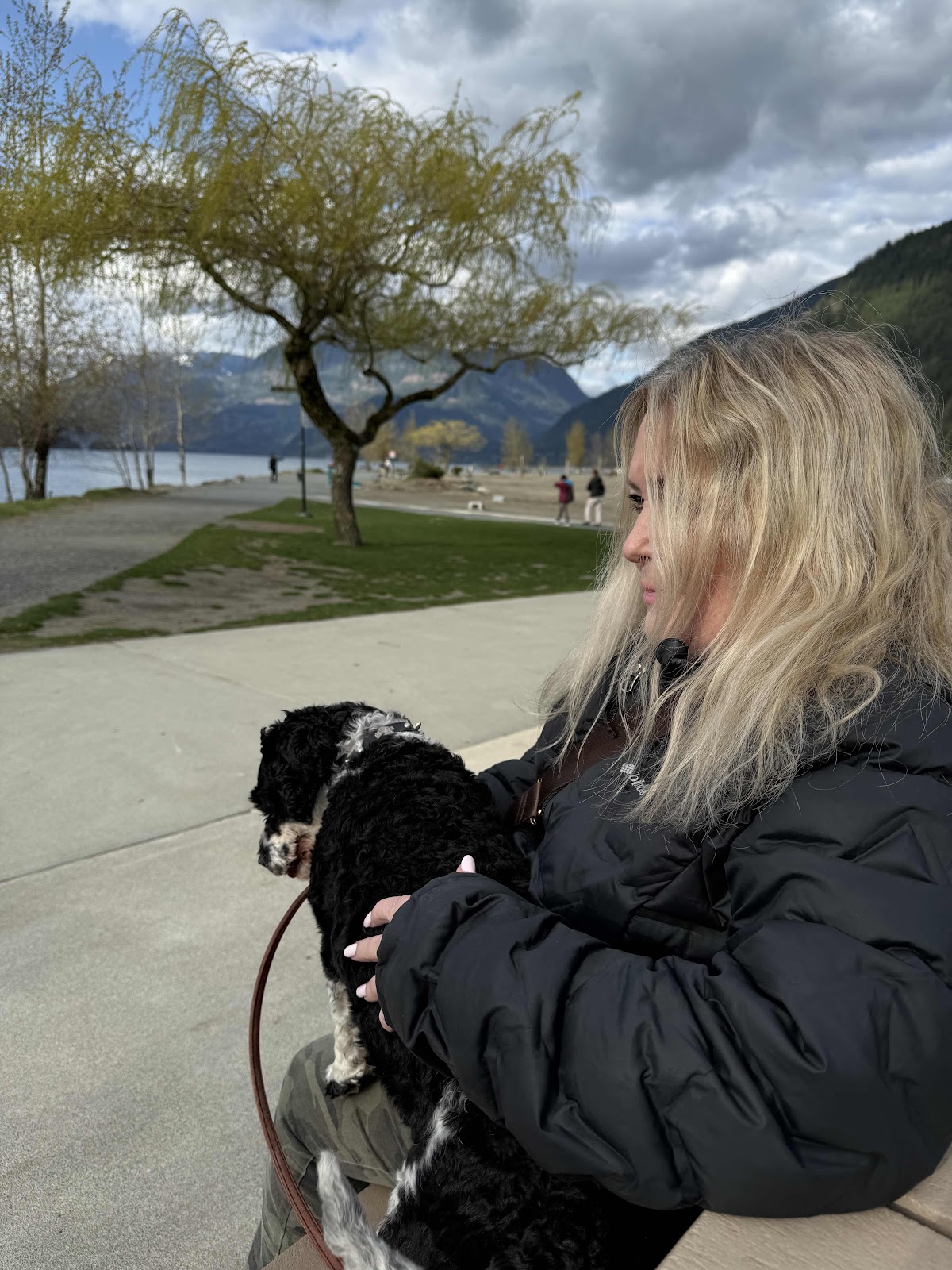 Without a dog we enjoyed dinners in the Copper Room. Before that i can remember coming for dinner and dancing in there. Since the dogs came , we’ve dined now at most of the restaurants in town that have a balcony where we can sit with a dog. Mostly though at the Harrison Hotspring I order our meals at the Lakeside Cafe. I had their fish and chips last night. Delicious Madigan loved his burger paddy and Laura the Chicken wrap. We topped it off with vanilla ice cream because Madigan likes a spoonful of that too. Life revolves around the dog.