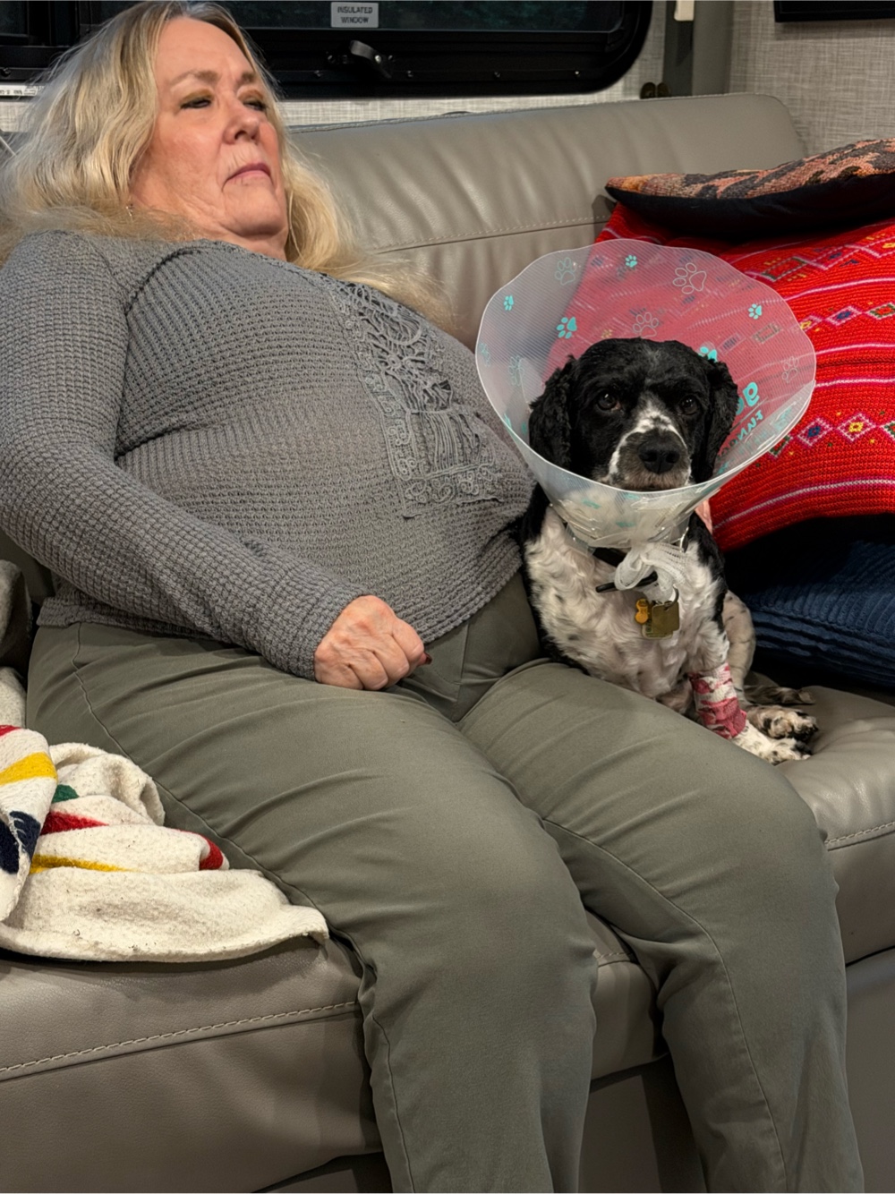 Hallow’s Eve came and went. Madigan had his tiny basal cell tumor removed from his right elbow by Dr. Biernacki at North Shore Vet. Laura had come over on the Friday so was there when I picked him up from Sabrina and brought him home. He was a little groggy still and sad when he bumped the cone but recovered quickly. He even took his antibiotic clav-amox with butter twice a day just fine. On Saturday we met Peter with Luka and Bella. Bella didn’t like the cone so Madigan isn’t able to socialize yet. Today on Monday he’s much better just waiting for the week of cone, antibiotics and healing to pass so he can get his cone off.
