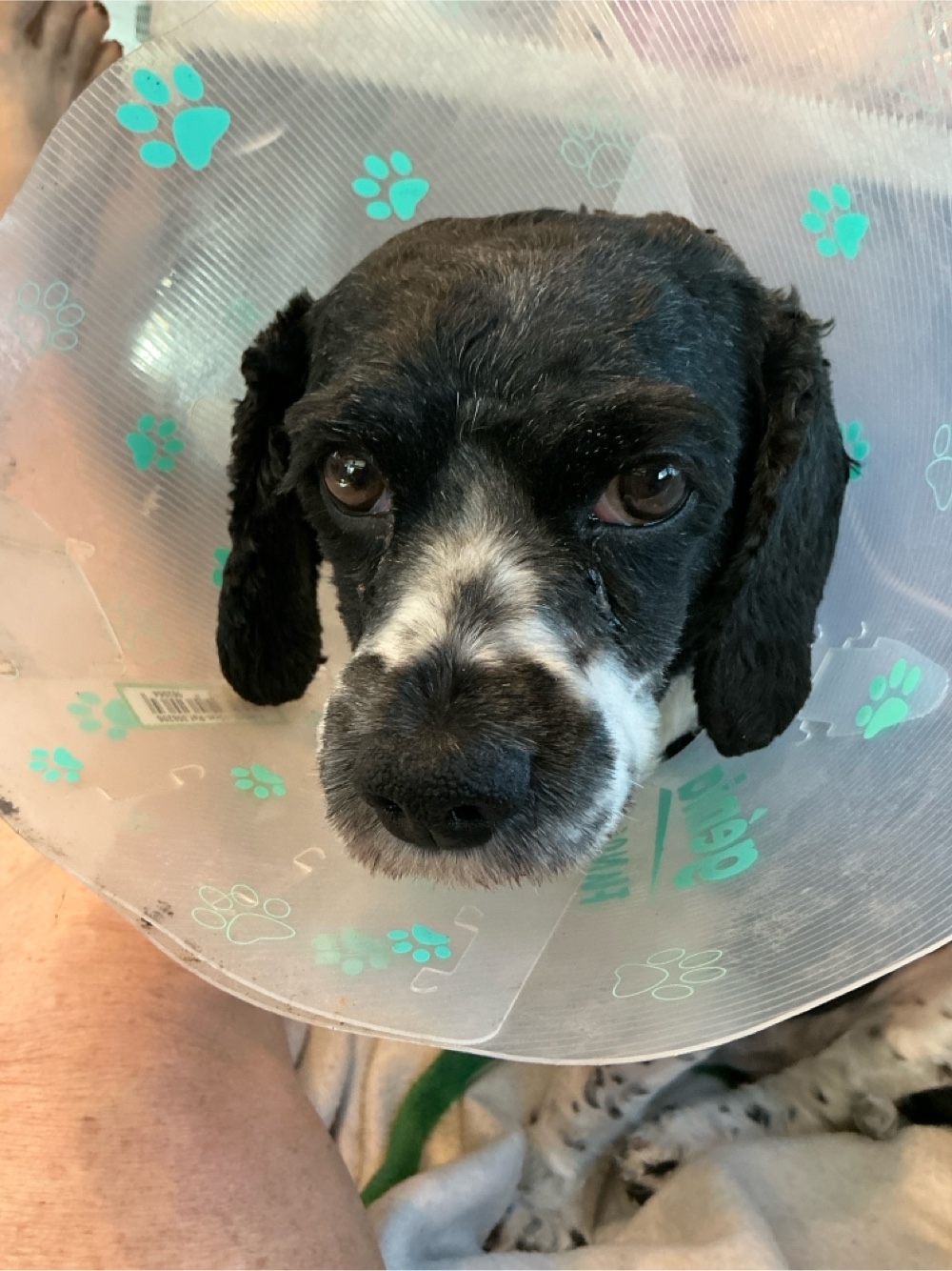 He’s doing well. He still has the cone but the wound is clean and he’s taking his antibiotic with butter twice a day. I have to have the sutures taken out 7-10 days. I phone Friday.