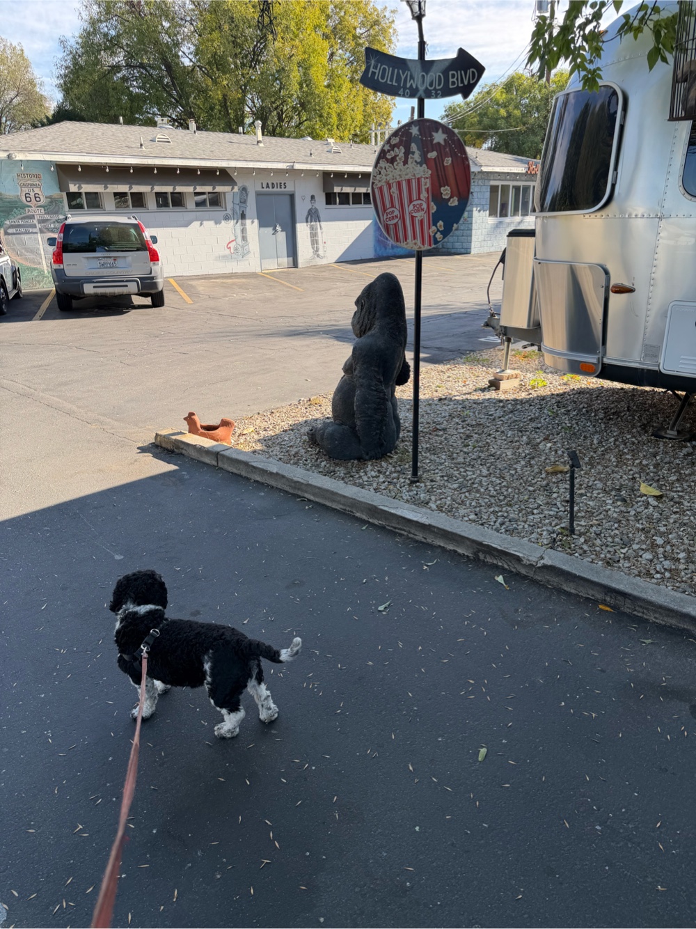 I texted Laura of my arrival. I sent a picture of the site and Thor and Madigan. She’s with her sister over the weekend then flies in to LA 830 am Monday. I’m going to enjoy the company. .