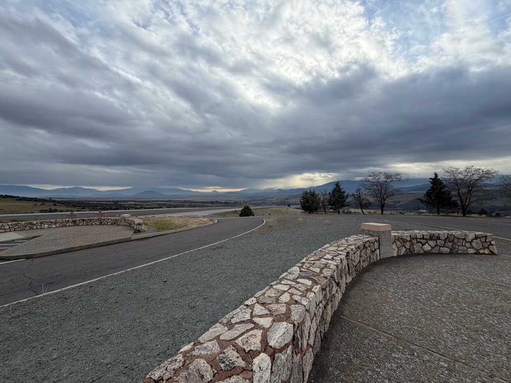 The trip out though was very pleasant. Long stretches of highway I broke up twice with sausage egg McMuffin at Macdonald’s. So nice to have breakfast sitting at my table. Normally I’d drive eating but am keeping both hands on the wheel as best I can. I also stopped at MacDonalds around 2 pm for a quarter pounder with cheese and fries. In the morning he enjoyed the side of bacon and in the afternoon his normal burger patter. He’s still quite anxious about the whole motorhome experience but settingling in beside me on the floor.