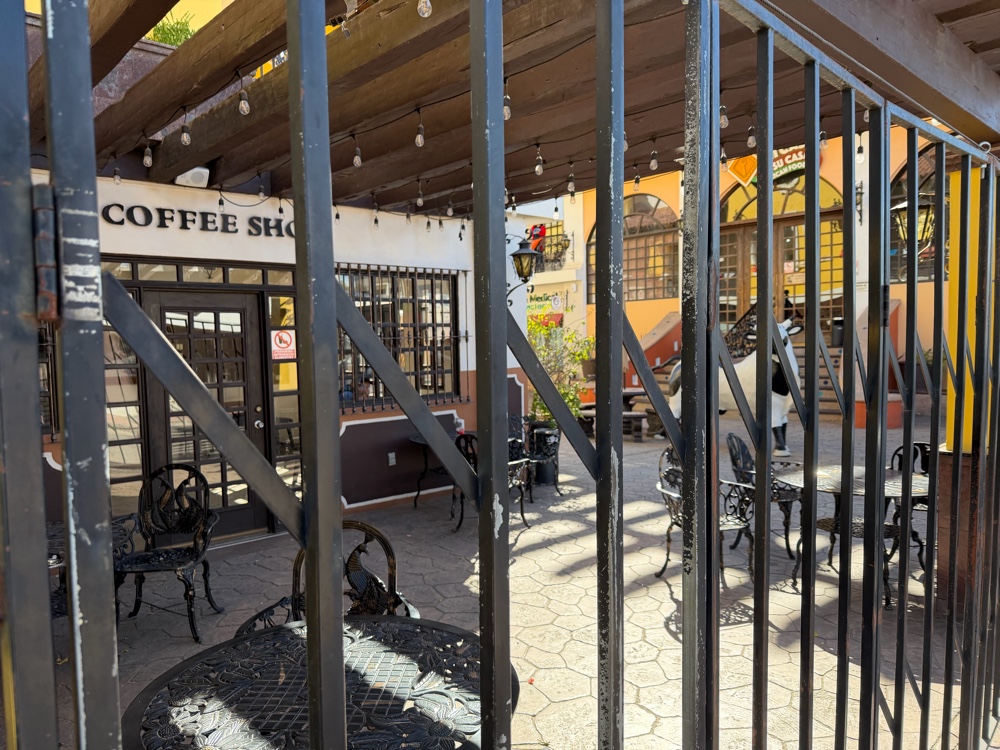 I had a great lunch at a cafe where they let me talk Madigan inside to sit under the table. They even had a plate of beef for him and water so I was glad to leave a good tip. Very much a local place. I had scrambled eggs , refried beans and rice with tortillas and coffee. More walking and then waiting to cross the border.