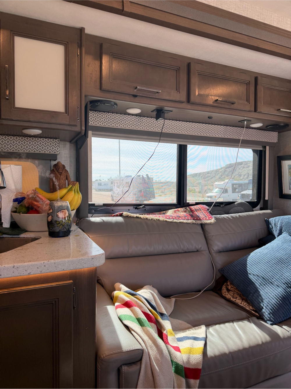 Madigan has been a good companion. I walked him to the dog park and let him run around. I look at my phone while he does that. Last night I did the same. When I began to think I wasn’t exercising enough and I wasn’t paying enough attention to him I remembered how on the weekend we’d spent three days walking all over Algadones. I’ve lost my shoe horn in the Thor so must get another so I would wear shoes rather than the flip flops. Walking I need more robust wear. Last year I used to walk a lot more than I have here in the Park. I haven’t even got my barbecue out and set up though I have a refridgerator full of food. Steaks and chops and chicken to be cooked but I thought I’d make a chilli. At the mini store here I’ve been able to pick up tacos and they’re a meal in themselves. All is well. I really am enjoying my Thor Hurricane Motorhome and Sleepy Hollow RV Park